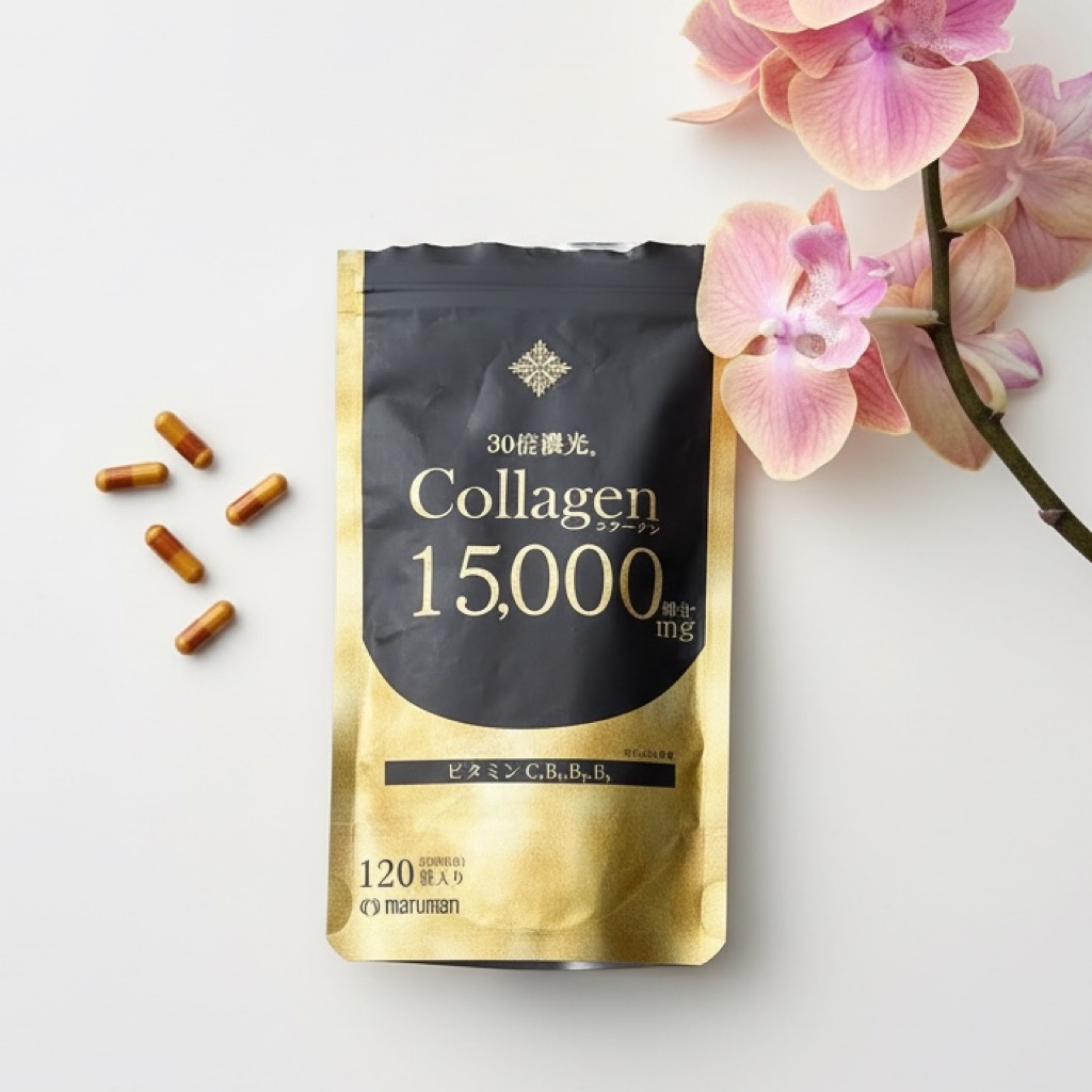 Усиленный коллаген в капсулах от японской компании Maruman содержит высокую концентрацию морского (рыбного) коллагена - 15000 мг - источник питания, увлажнения и упругости кожи. Это популярное и эффективное средство для омоложения кожи и восстановления подвижности и структуры суставов. Кроме того, высококонцентрированный коллаген способствует укреплению и росту волос, делая их блестящими, и служит отличной профилактикой ломкости ногтевой пластины.